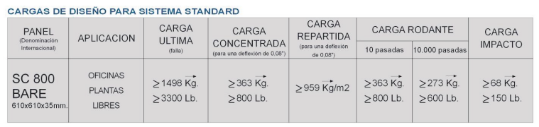 Peso del sistema: 45 kg/m².